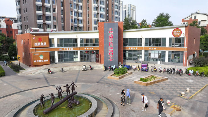 這是2024年6月20日拍攝的寧夏銀川市金鳳區(qū)長(zhǎng)城花園社區(qū)日間照料中心(無人機(jī)照片)。