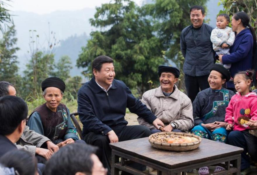 2013年11月3日,習(xí)近平總書記在湘西十八洞村考察時(shí),同村干部和村民座談。