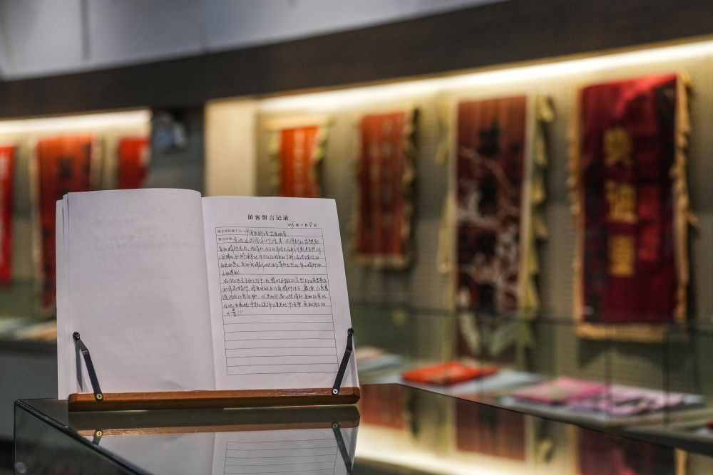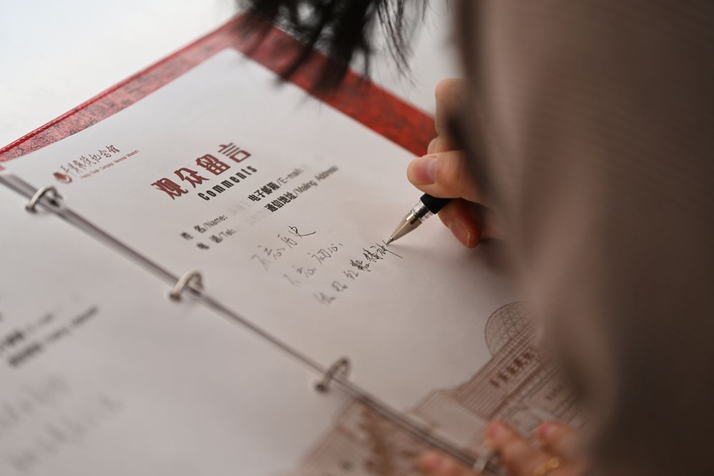 2025年3月31日,參觀者在江蘇省徐州市淮海戰(zhàn)役紀(jì)念館留言簿上留言。