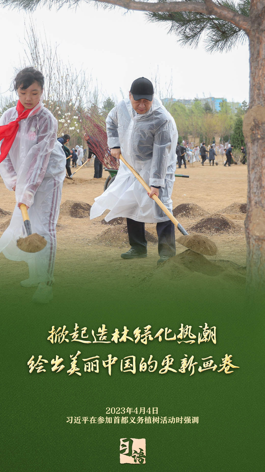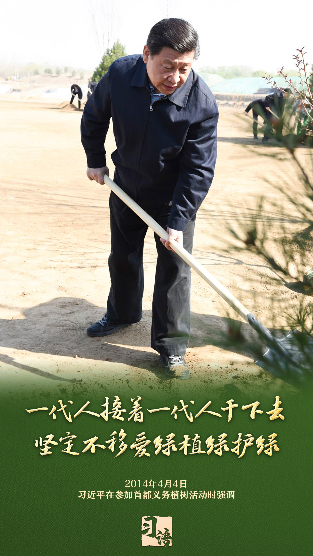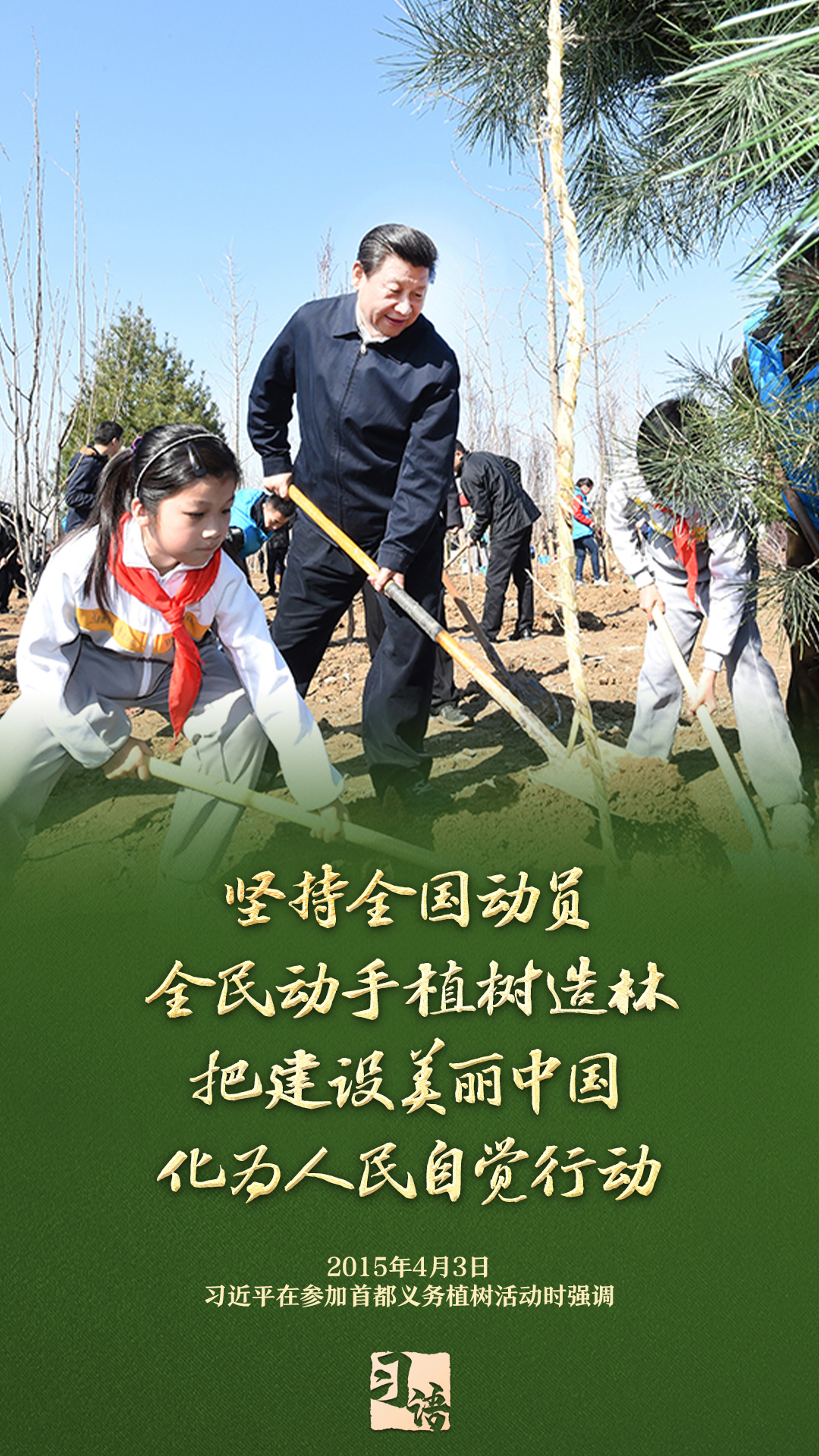 “植樹(shù)造林是一件很有意義的事情,是一項(xiàng)功在當(dāng)代、利在千秋的崇高事業(yè),要一以貫之、持續(xù)做下去?!弊?013年以來(lái)的13個(gè)春天里,無(wú)論晴雨,習(xí)近平總書記都會(huì)拿起鐵鍬,與干部群眾一起參加首都義務(wù)植樹(shù)活動(dòng)。鏟土造坑、培土圍堰、提水澆灌,總書記身體力行種下綠色的希望,對(duì)擴(kuò)綠興綠護(hù)綠、建設(shè)美麗中國(guó)提出明確要求。一起學(xué)習(xí)。