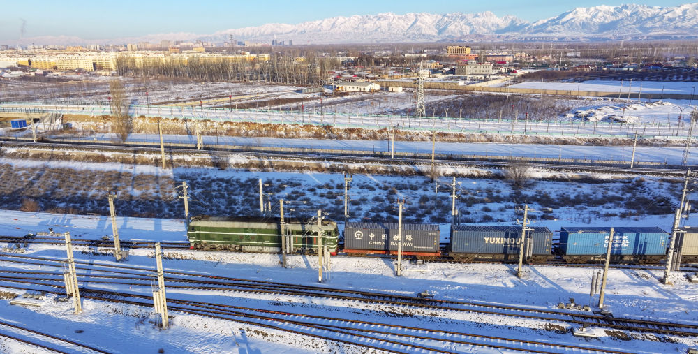 2024年12月25日,一列中歐班列經霍爾果斯口岸駛向哈薩克斯坦(無人機照片)?;魻柟箍诎兜靥幰晾绻_克自治州、毗鄰哈薩克斯坦,是古絲綢之路北道上的千年驛站,也是近現(xiàn)代對外開放的百年口岸,更是我國面向中亞、西亞乃至歐洲的重要物流通道。2024年,該口岸中歐(中亞)班列開行量達8730列,同比增長12.5%;貨物過貨量達1208.4萬噸,同比增長10.9%;通行班列線路總數(shù)超過80條,輻射境外18個國家的46個城市。