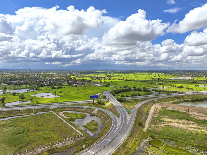 這是2024年9月25日在柬埔寨磅士卑省拍攝的金港高速公路(無(wú)人機(jī)照片)。金港高速公路是中國(guó)路橋工程有限責(zé)任公司(中國(guó)路橋)按“建造-運(yùn)營(yíng)-移交”模式投資的項(xiàng)目。