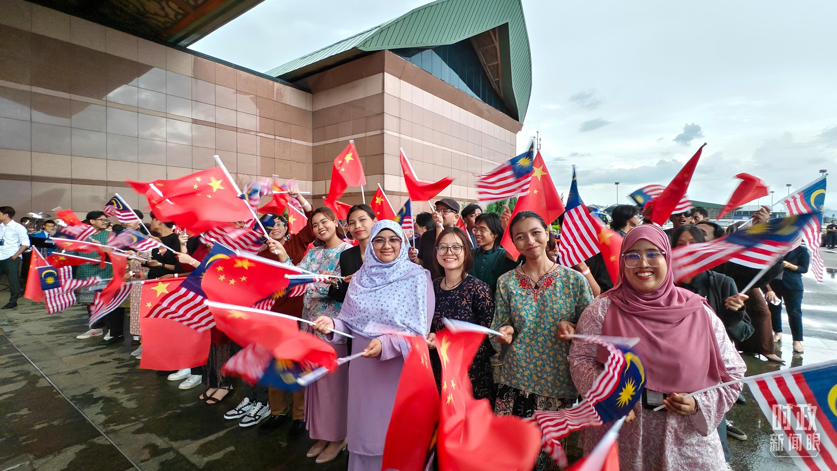 迎接習(xí)近平主席的馬來(lái)西亞當(dāng)?shù)厝巳?。(總臺(tái)央視記者韓銳拍攝)