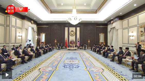 4月16日上午,馬來西亞最高元首易卜拉欣在馬來西亞國家王宮同中國國家主席習近平舉行會見。
