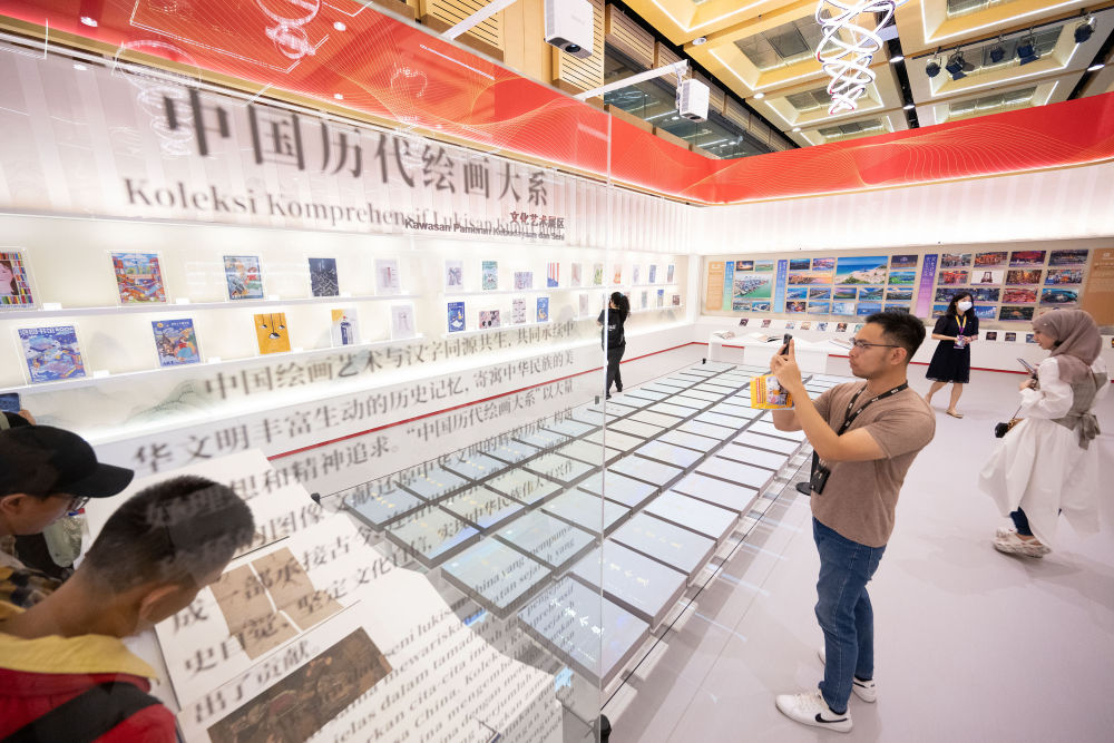 2023年5月26日,觀眾在馬來西亞吉隆坡舉行的第40屆吉隆坡國際書展上觀看“中國歷代繪畫大系”展覽。由浙江大學、浙江省文物局編纂,浙江大學出版社出版的“中國歷代繪畫大系”,收錄了海內(nèi)外263家文博機構(gòu)的紙、絹(含帛、綾)、麻等材質(zhì)的中國古代繪畫藏品12000余件(套),涵蓋了絕大部分傳世的“國寶”級繪畫珍品。