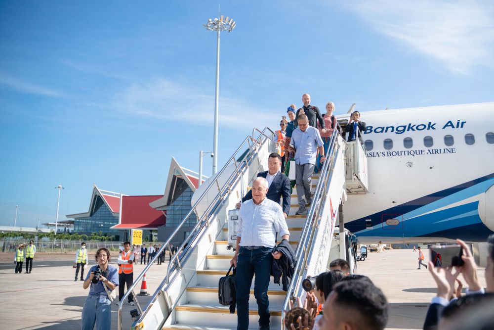 2023年10月16日,由中國企業(yè)在海外以“BOT模式(建設(shè)-運營-移交)”建設(shè)的柬埔寨暹粒吳哥國際機場通航運營。這是該機場首架進(jìn)港客機乘客走下飛機。