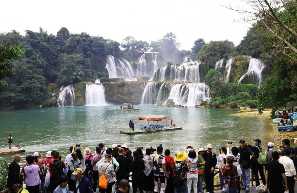 △2024年12月,游客在中越德天(板約)瀑布跨境旅游合作區(qū)游覽。