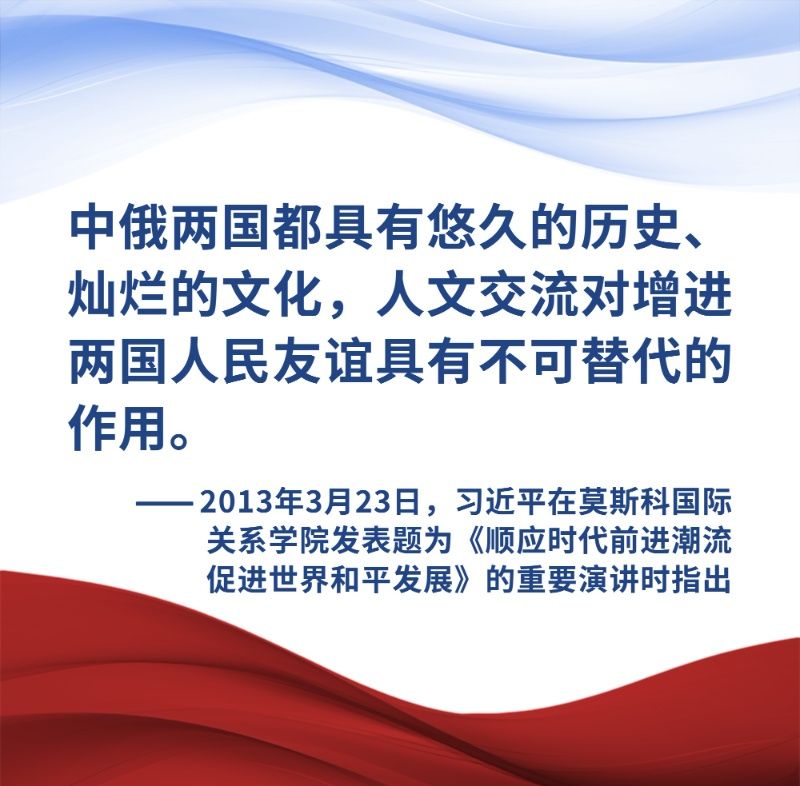 新時(shí)代,在元首外交引領(lǐng)下,中俄間豐富多彩的人文交流活動(dòng),持續(xù)夯實(shí)兩國(guó)世代友好的社會(huì)和民意基礎(chǔ)。