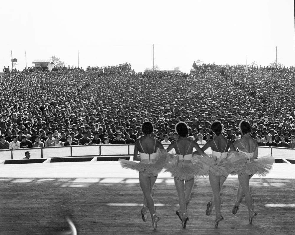 1957年10月,蘇聯(lián)國(guó)立新西伯利亞歌劇芭蕾舞劇院為北京石景山鋼鐵廠工人演出。