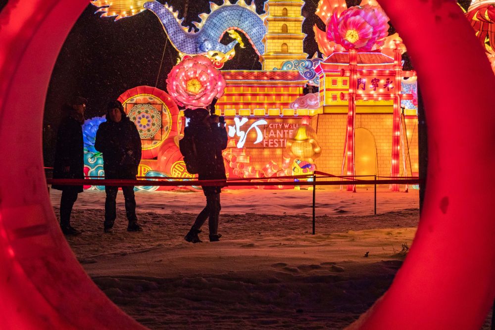 2019年12月4日,在俄羅斯首都莫斯科的中國(guó)彩燈節(jié)上,觀眾拍攝來(lái)自中國(guó)四川省自貢市的彩燈作品。