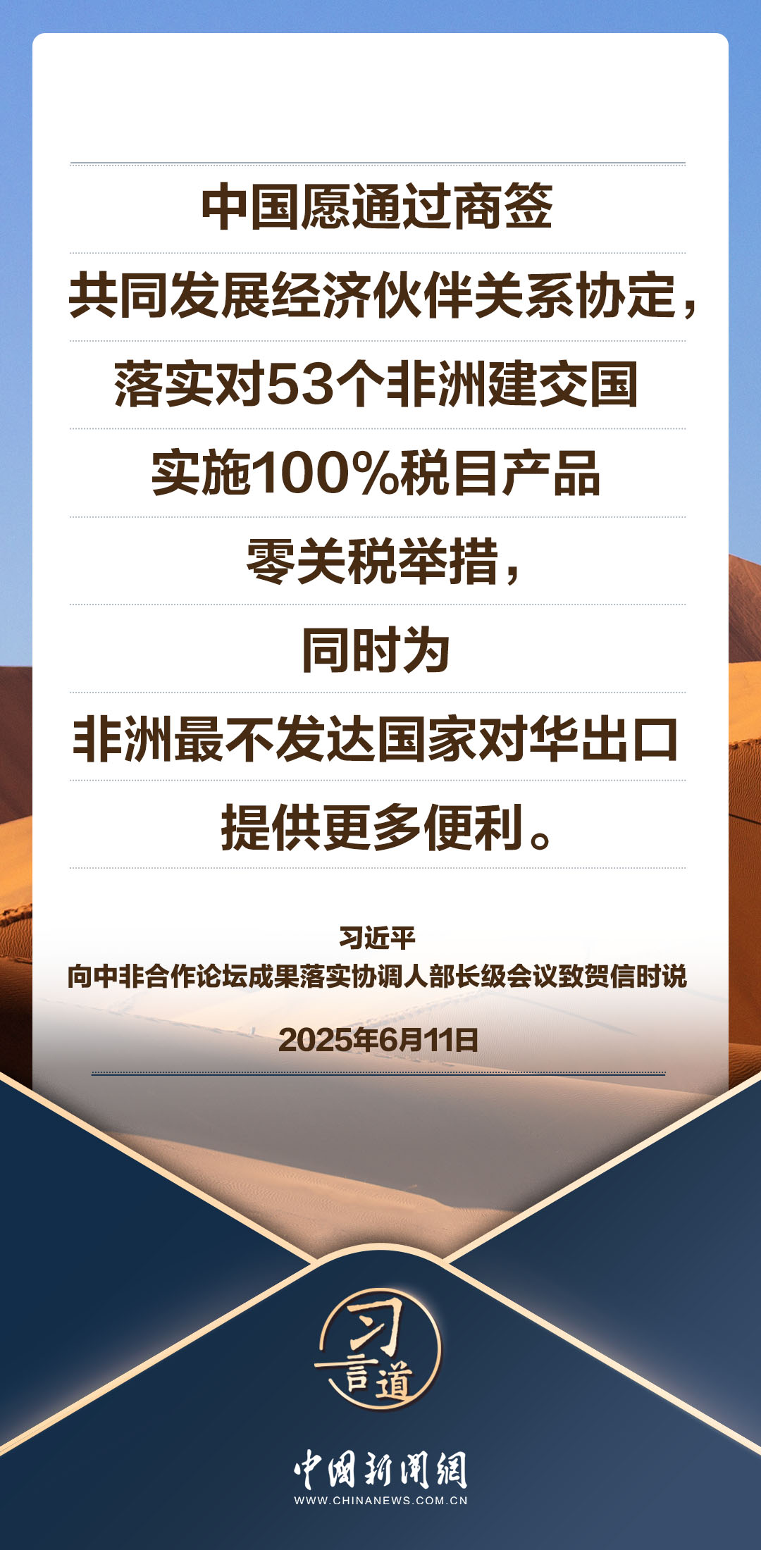6月11日,國家主席習(xí)近平同剛果(布)總統(tǒng)薩蘇分別向中非合作論壇成果落實協(xié)調(diào)人部長級會議致賀信,對會議召開表示熱烈祝賀。習(xí)近平指出——