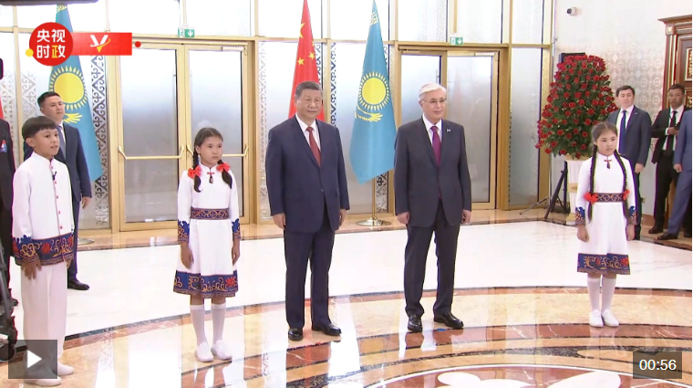 習(xí)近平抵達阿斯塔納納扎爾巴耶夫國際機場時,托卡耶夫總統(tǒng)率總統(tǒng)辦公廳主任達杰拜、副總理兼外長努爾特列烏、總統(tǒng)外事顧問卡濟漢、阿斯塔納市長卡瑟姆別克等高級官員熱情迎接。