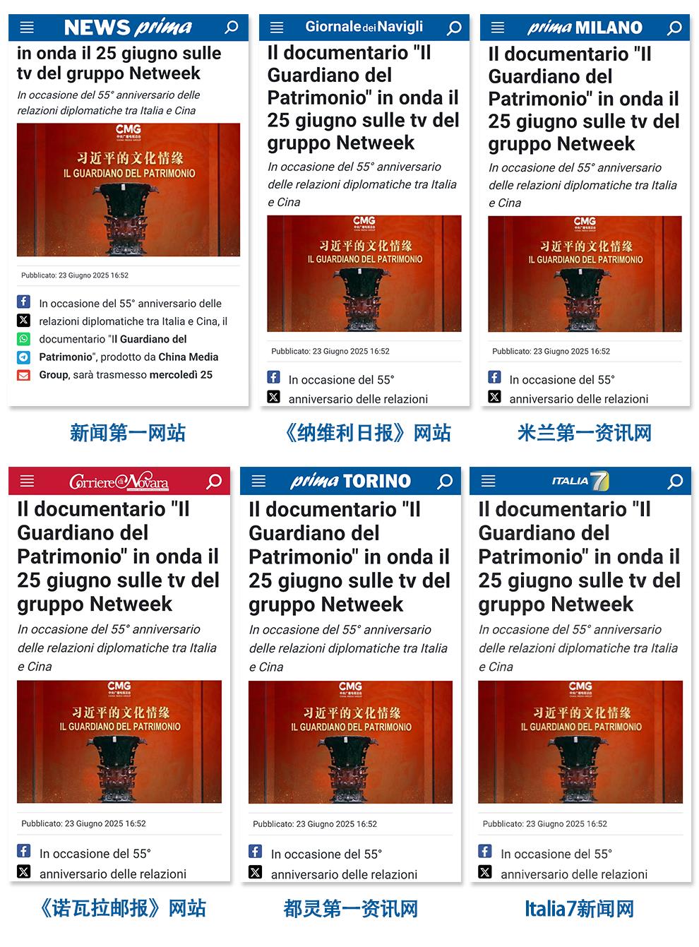 意大利新聞第一網(wǎng)站、《納維利日?qǐng)?bào)》網(wǎng)站、米蘭第一資訊網(wǎng)等40多家主流媒體發(fā)布節(jié)目播出消息。文章指出,節(jié)目通過(guò)生動(dòng)的故事展示出習(xí)近平主席治國(guó)理政理念的深厚文化根基,讓海外受眾了解中國(guó)在文化傳承發(fā)展上所做出的不懈努力。