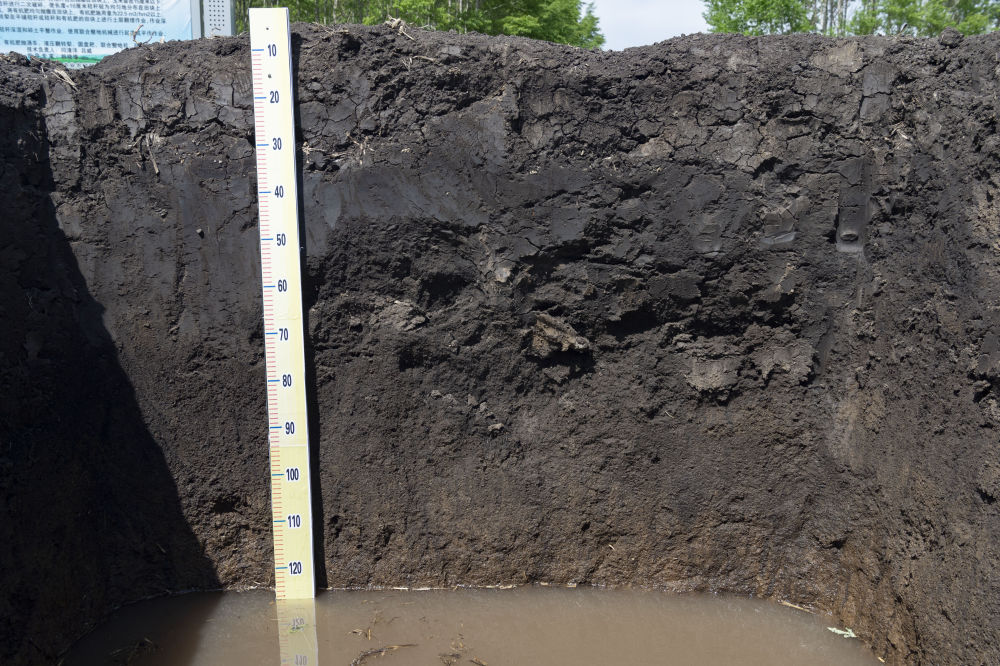 黑龍江省海倫市前進鎮(zhèn)自新村農(nóng)業(yè)科技示范基地內(nèi)一處用來觀測黑土層厚度的土壤剖面(2022年5月23日攝)。