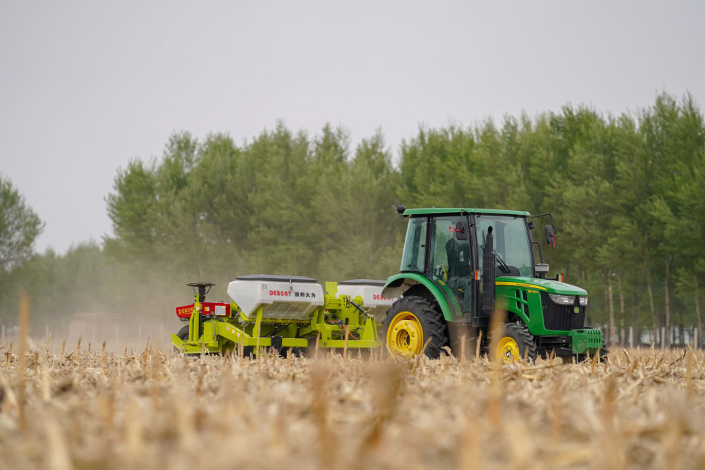 經(jīng)過多年試驗和推廣,東北逐步形成以秸稈覆蓋、少耕免耕為特點的吉林“梨樹模式”等多種行之有效的保護性耕作模式。這是2020年5月7日,吉林省四平市梨樹縣的農(nóng)民駕駛免耕播種機播種玉米。