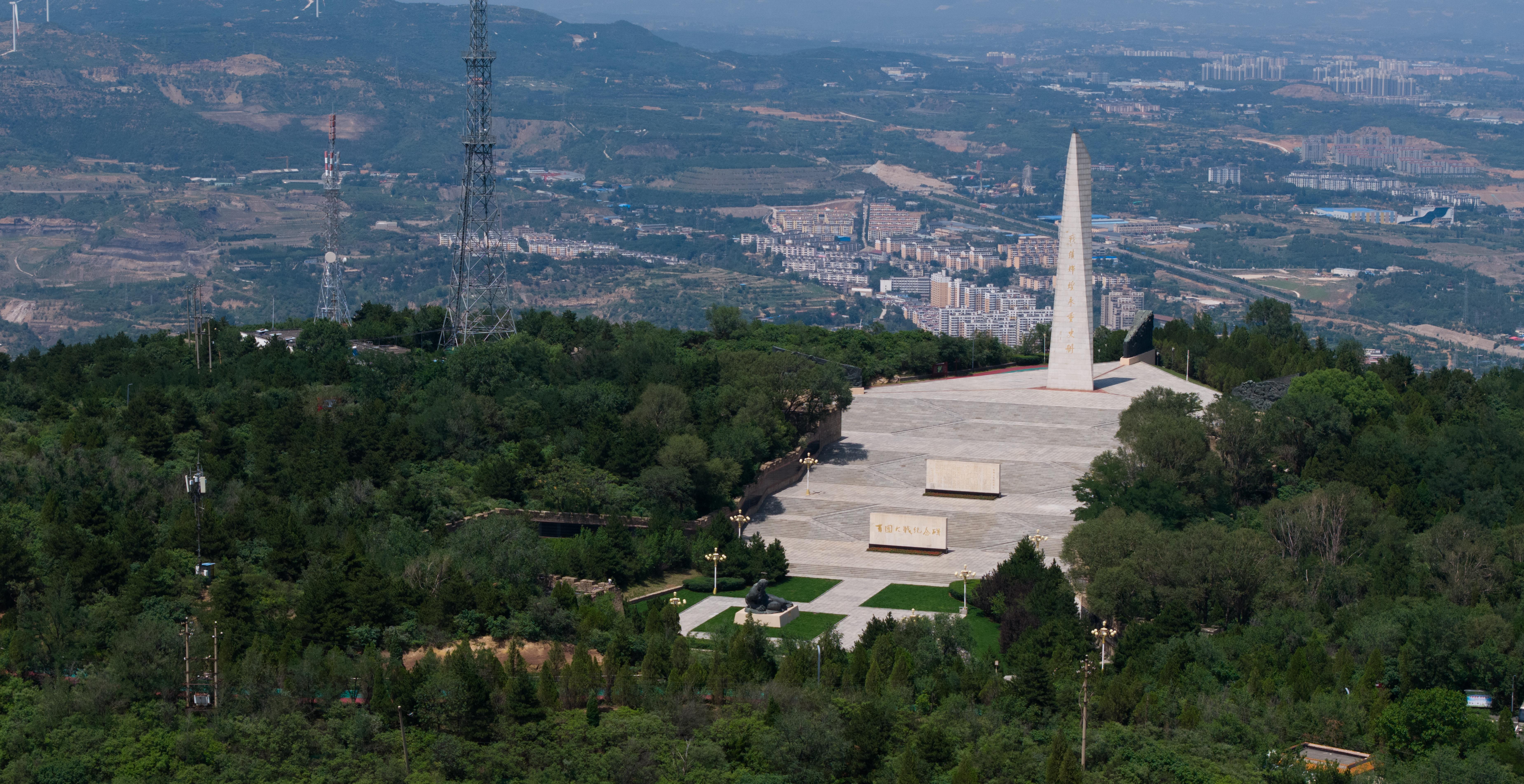 △獅腦山頂峰,百團(tuán)大戰(zhàn)紀(jì)念碑如一把鋒利的刺刀直插云霄。(總臺(tái)國廣記者李晉拍攝)