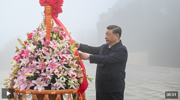 習(xí)近平在陽(yáng)泉市向抗戰(zhàn)烈士敬獻(xiàn)花籃并參觀百團(tuán)大戰(zhàn)紀(jì)念館