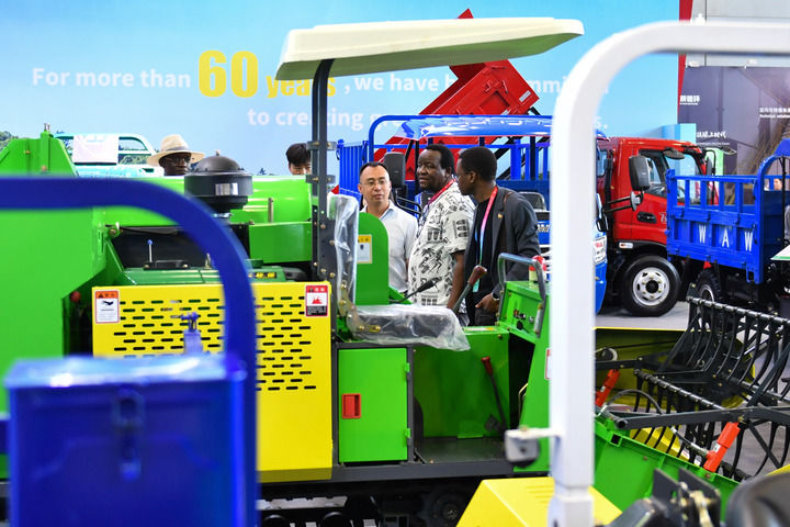 2025年6月14日,觀眾在長(zhǎng)沙國(guó)際會(huì)展中心參觀農(nóng)機(jī)設(shè)備。6月12日至15日,第四屆中國(guó)—非洲經(jīng)貿(mào)博覽會(huì)在湖南長(zhǎng)沙舉行。新華社記者 陳振海 攝