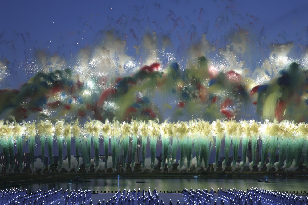 2025年8月7日在第12屆世界運動會開幕式上拍攝的焰火表演。