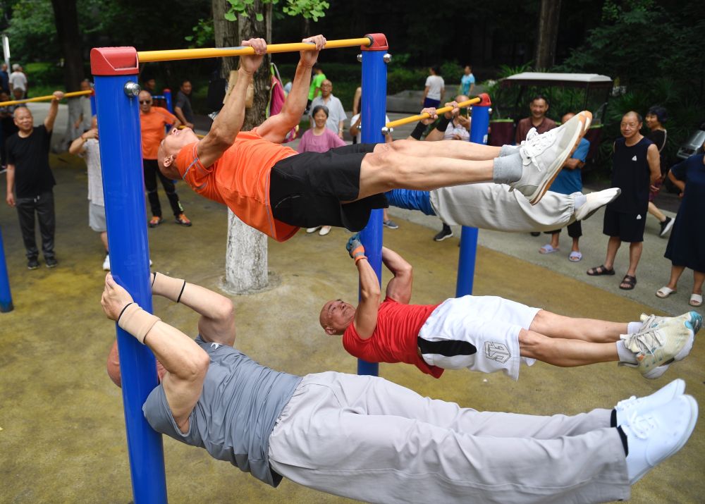 2024年6月18日,健身愛好者在四川成都新華公園內鍛煉。