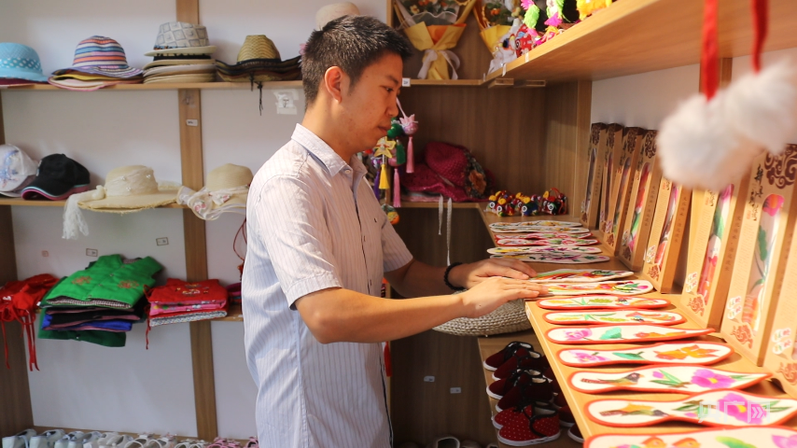 從外地返鄉(xiāng)的“90后”扶銀廷和妻子,在田鋪大塆創(chuàng)辦了一家“文創(chuàng)工坊”?!跋裥瑝|、虎頭枕、虎頭帽這些手工制品,都是我們當(dāng)?shù)匾恍├先恕⒋蠼闶止ぷ龅?。這些特色的文創(chuàng)產(chǎn)品既能讓游客了解當(dāng)?shù)乇就廖幕?,又增加了村民收入?!狈鲢y廷說。