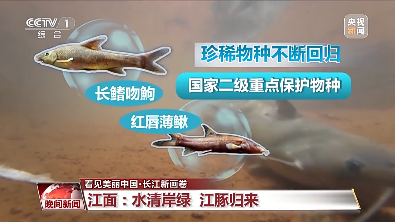 如今,最新監(jiān)測(cè)到長(zhǎng)江江豚種群已達(dá)1249頭,比5年前增長(zhǎng)了200多頭。重新回到長(zhǎng)江家園的不只是江豚,長(zhǎng)江物種多樣性水平在穩(wěn)步回升,2021年至2024年,長(zhǎng)江流域累計(jì)監(jiān)測(cè)到土著魚類344種,比禁漁前2017年至2020年增加了36種。