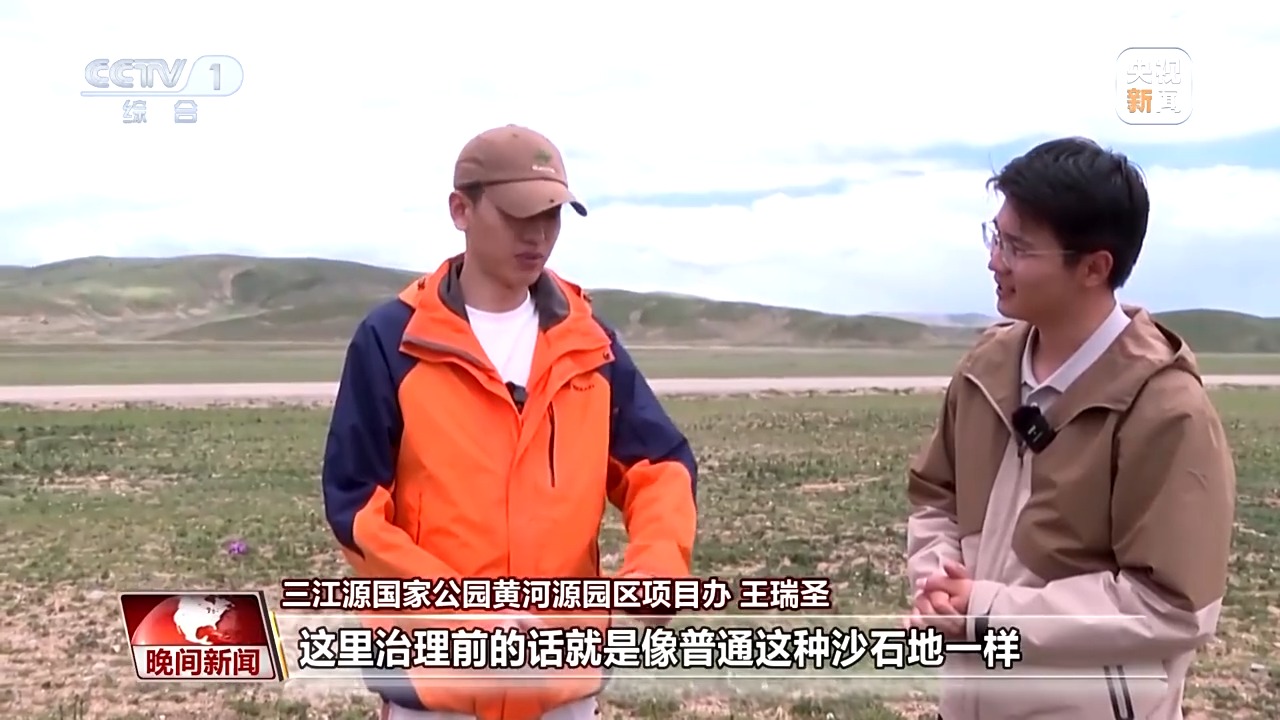 三江源國家公園黃河源園區(qū)項目干事 王瑞圣:這里治理前就像普通沙石地一樣,治理完的成效就是這樣子的,我們的草籽就在當(dāng)時切割的凹槽里面生長,這些草籽好多根部已經(jīng)進(jìn)行分裂了,所以會顯得非常茂密。