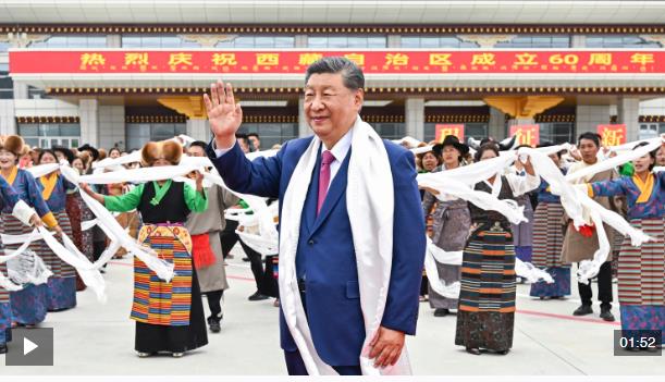 中共中央總書記、國家主席、中央軍委主席習(xí)近平率中央代表團(tuán)20日中午乘專機(jī)抵達(dá)拉薩,出席西藏自治區(qū)成立60周年慶祝活動(dòng)。習(xí)近平等在機(jī)場和拉薩市區(qū)受到西藏各族群眾的熱烈歡迎。中共中央政治局常委、全國政協(xié)主席、中央代表團(tuán)團(tuán)長王滬寧,中共中央政治局常委、中央辦公廳主任蔡奇等同機(jī)抵達(dá)。