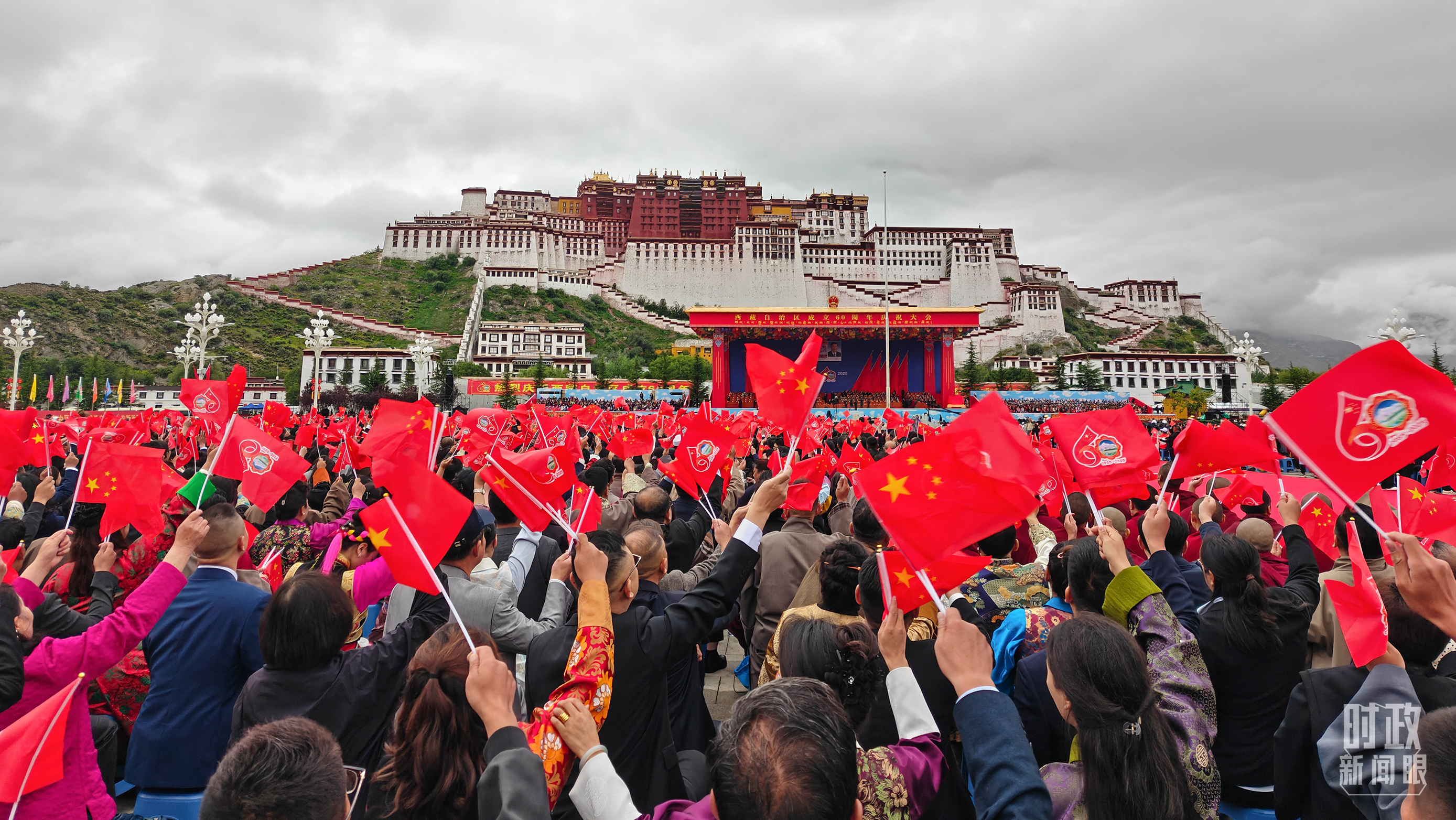西藏自治區(qū)成立60周年慶祝大會(huì)在拉薩布達(dá)拉宮廣場(chǎng)隆重舉行。(總臺(tái)央視記者趙化拍攝)