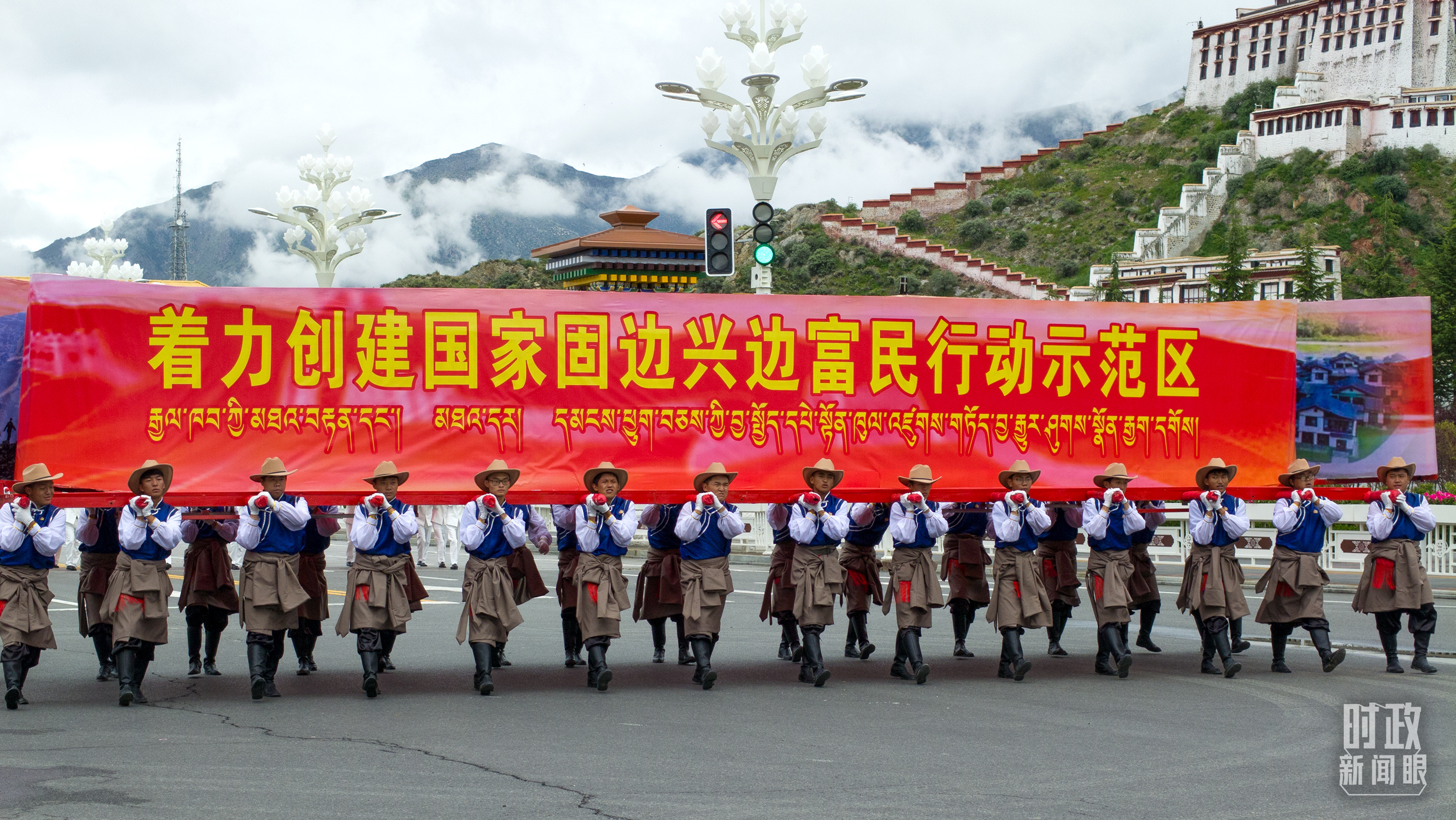 在慶祝大會(huì)的群眾游行環(huán)節(jié),“四件大事”單元展示了西藏自治區(qū)“四個(gè)創(chuàng)建”的奮斗目標(biāo):著力創(chuàng)建全國(guó)民族團(tuán)結(jié)進(jìn)步模范區(qū)、著力創(chuàng)建高原經(jīng)濟(jì)高質(zhì)量發(fā)展先行區(qū)、著力創(chuàng)建國(guó)家生態(tài)文明高地、著力創(chuàng)建國(guó)家固邊興邊富民行動(dòng)示范區(qū),分別對(duì)應(yīng)穩(wěn)定、發(fā)展、生態(tài)、強(qiáng)邊四件大事。