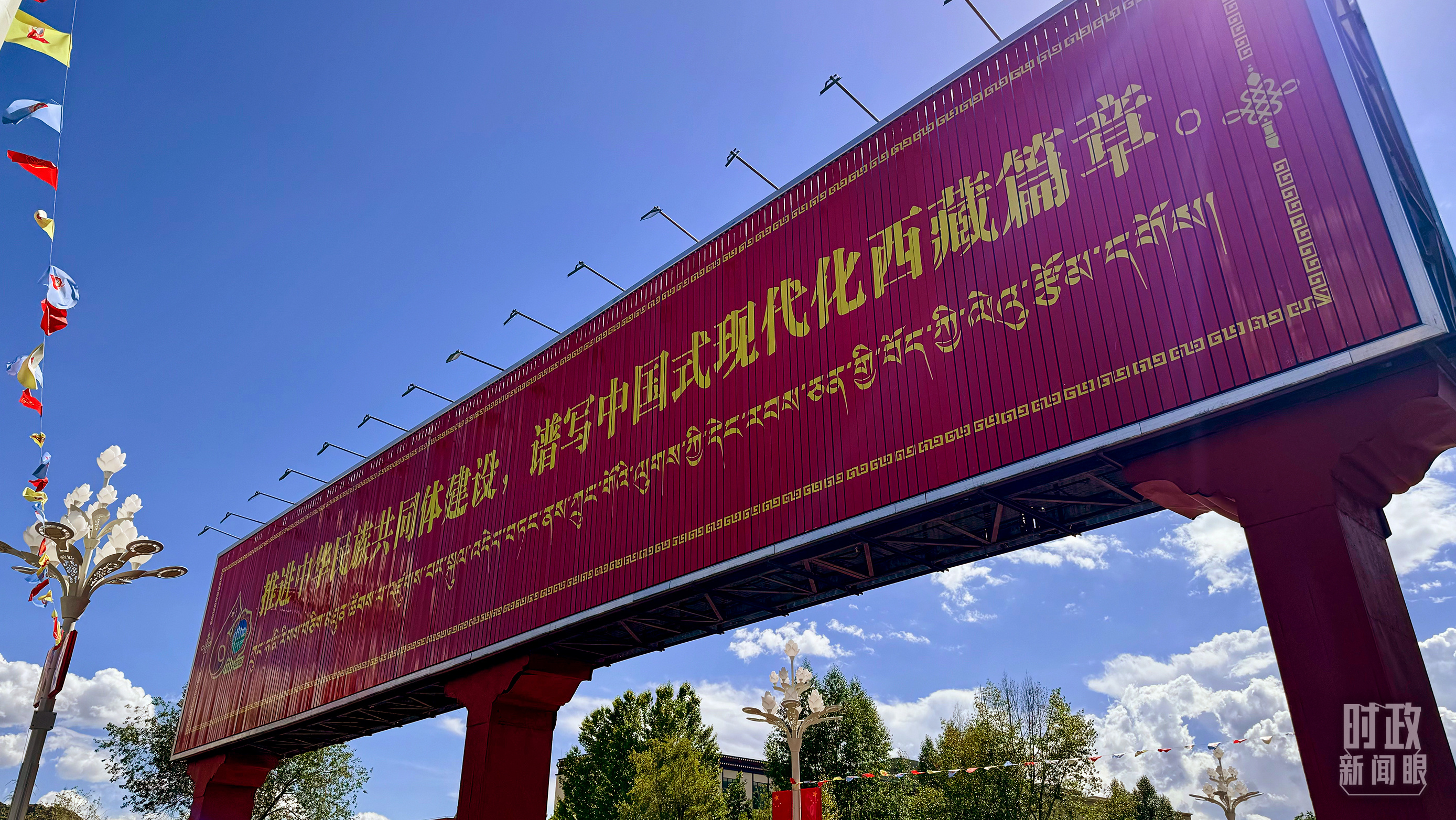 西藏自治區(qū)成立60周年標(biāo)語(yǔ)牌。(總臺(tái)央視記者張宇拍攝)