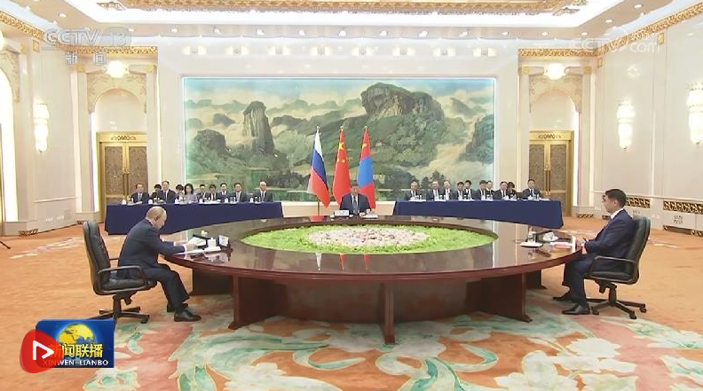 普京表示,俄中蒙是友好鄰邦,有著悠久合作傳統(tǒng)。增進(jìn)政治互信很重要,有利于夯實三方關(guān)系基礎(chǔ)。俄方愿同中、蒙開展平等互利、面向未來的戰(zhàn)略合作,使三方合作同雙邊合作相互補(bǔ)充、相互促進(jìn)。三方要密切發(fā)展戰(zhàn)略對接,加強(qiáng)互聯(lián)互通,擴(kuò)大貿(mào)易和投資規(guī)模,深化金融、能源、數(shù)字經(jīng)濟(jì)、教育、環(huán)保、旅游等領(lǐng)域合作交流,助力各自經(jīng)濟(jì)發(fā)展,促進(jìn)區(qū)域經(jīng)濟(jì)融合,增進(jìn)民心相通。