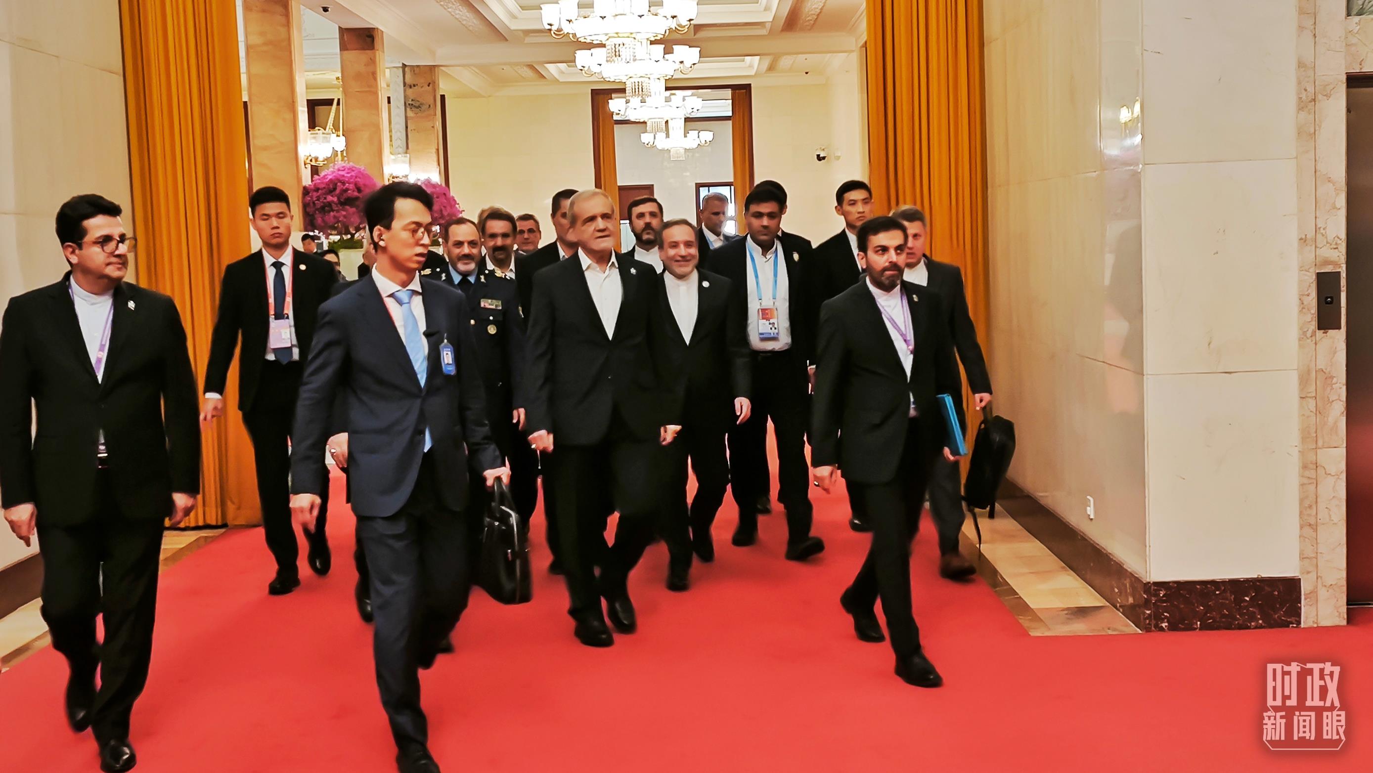 △伊朗總統(tǒng)佩澤希齊揚(yáng)走向會(huì)見廳。(總臺(tái)國(guó)廣記者蔡靖骉拍攝)