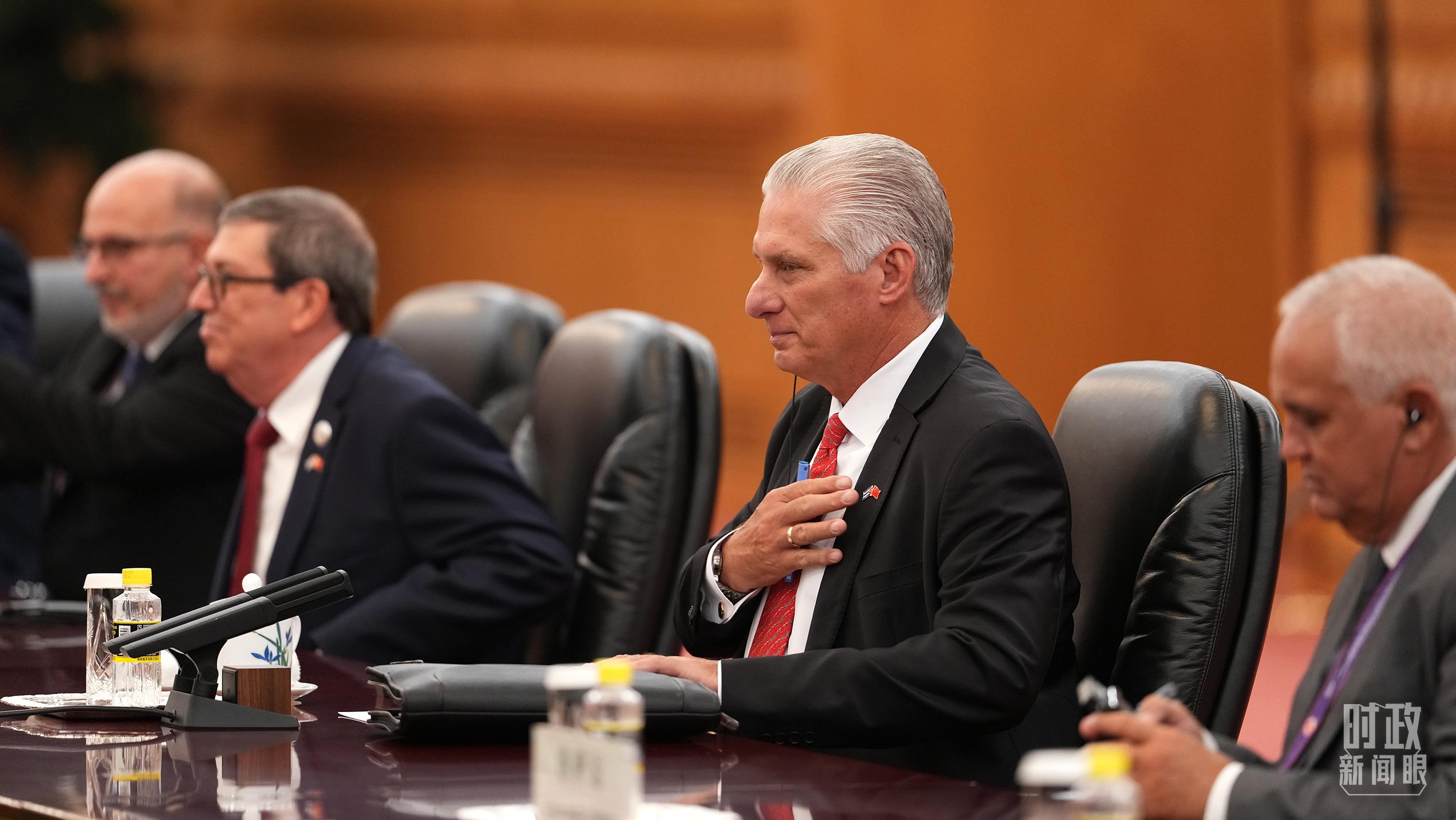 △古巴共產(chǎn)黨中央委員會(huì)第一書記、古巴國家主席迪亞斯-卡內(nèi)爾在會(huì)見中。(總臺(tái)記者李晉拍攝)