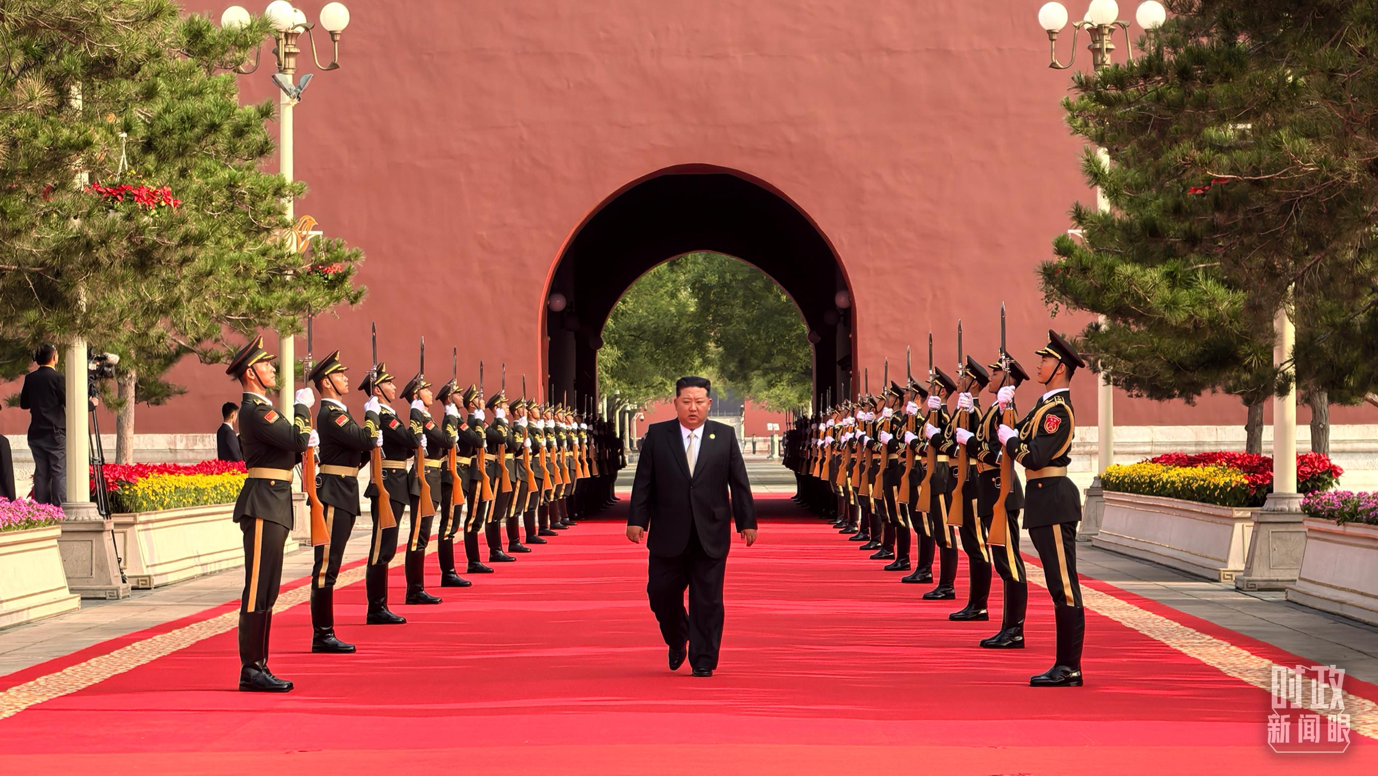 △9月3日上午,金正恩抵達(dá)端門外廣場參加迎賓儀式。(總臺(tái)央視記者李增仁拍攝)