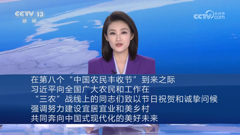 “希望廣大農(nóng)民群眾充分發(fā)揮主動性創(chuàng)造性,社會各界積極支持參與,努力建設(shè)宜居宜業(yè)和美鄉(xiāng)村,共同奔向中國式現(xiàn)代化的美好未來?!痹诘诎藗€“中國農(nóng)民豐收節(jié)”到來之際,習近平總書記向全國廣大農(nóng)民和工作在“三農(nóng)”戰(zhàn)線上的同志們致以節(jié)日祝賀和誠摯問候。