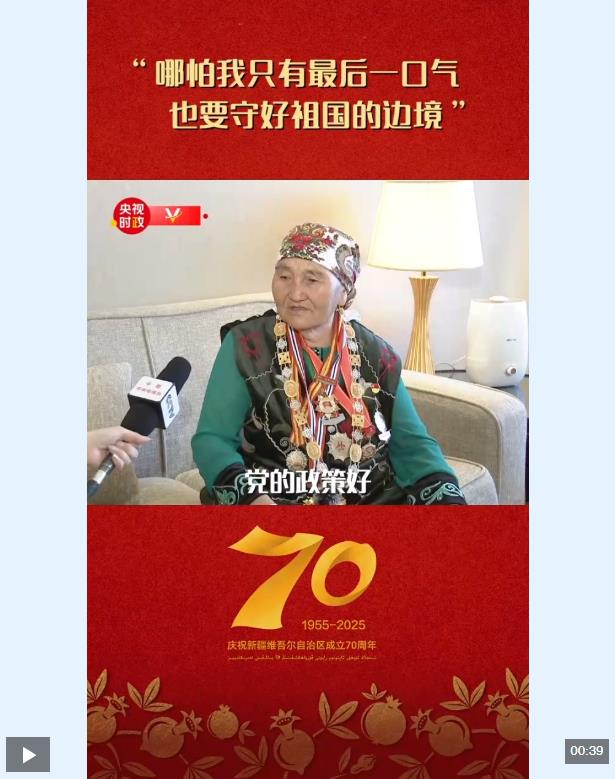 “人民楷模”國家榮譽(yù)稱號獲得者布茹瑪汗·毛勒朵表達(dá)了她最想對總書記說的話:“我從19歲開始守邊護(hù)邊,哪怕我只有最后一口氣,也要守好祖國的邊境?!?/p>