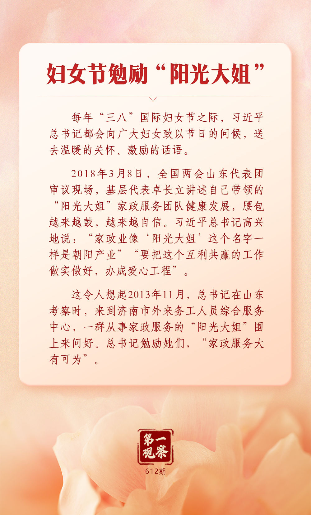習近平總書記始終心系婦女事業(yè)發(fā)展。在全球婦女峰會即將召開之際,讓我們一道深刻體悟這份一以貫之的牽掛與重視。