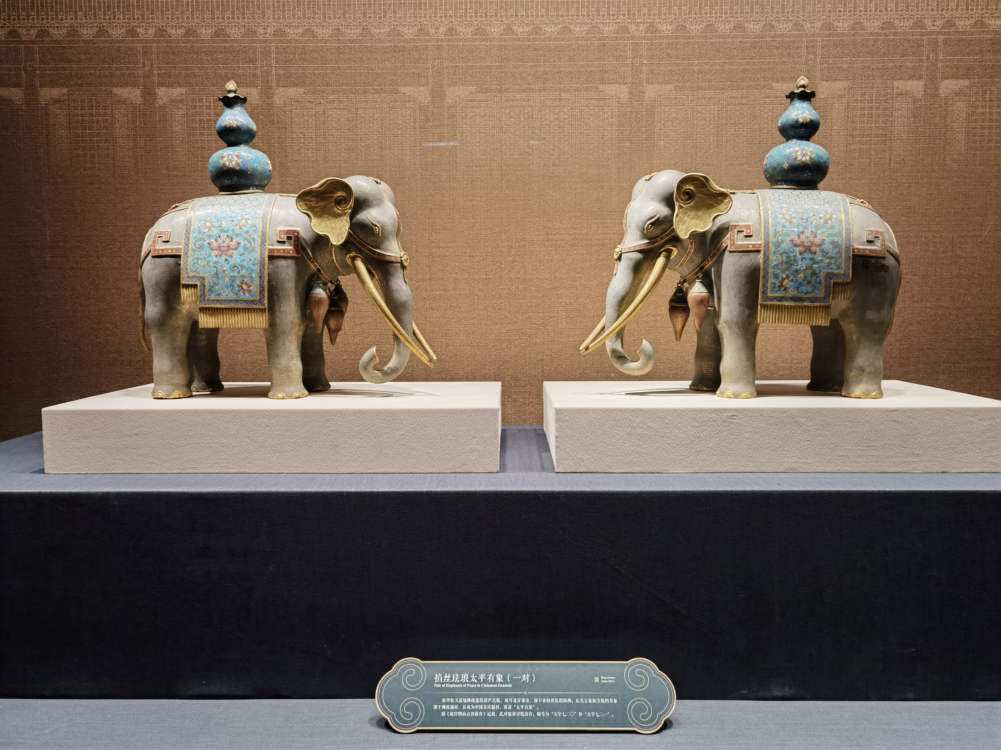 故宮展出的掐絲琺瑯太平有象。(總臺(tái)央視記者程愛(ài)華拍攝)