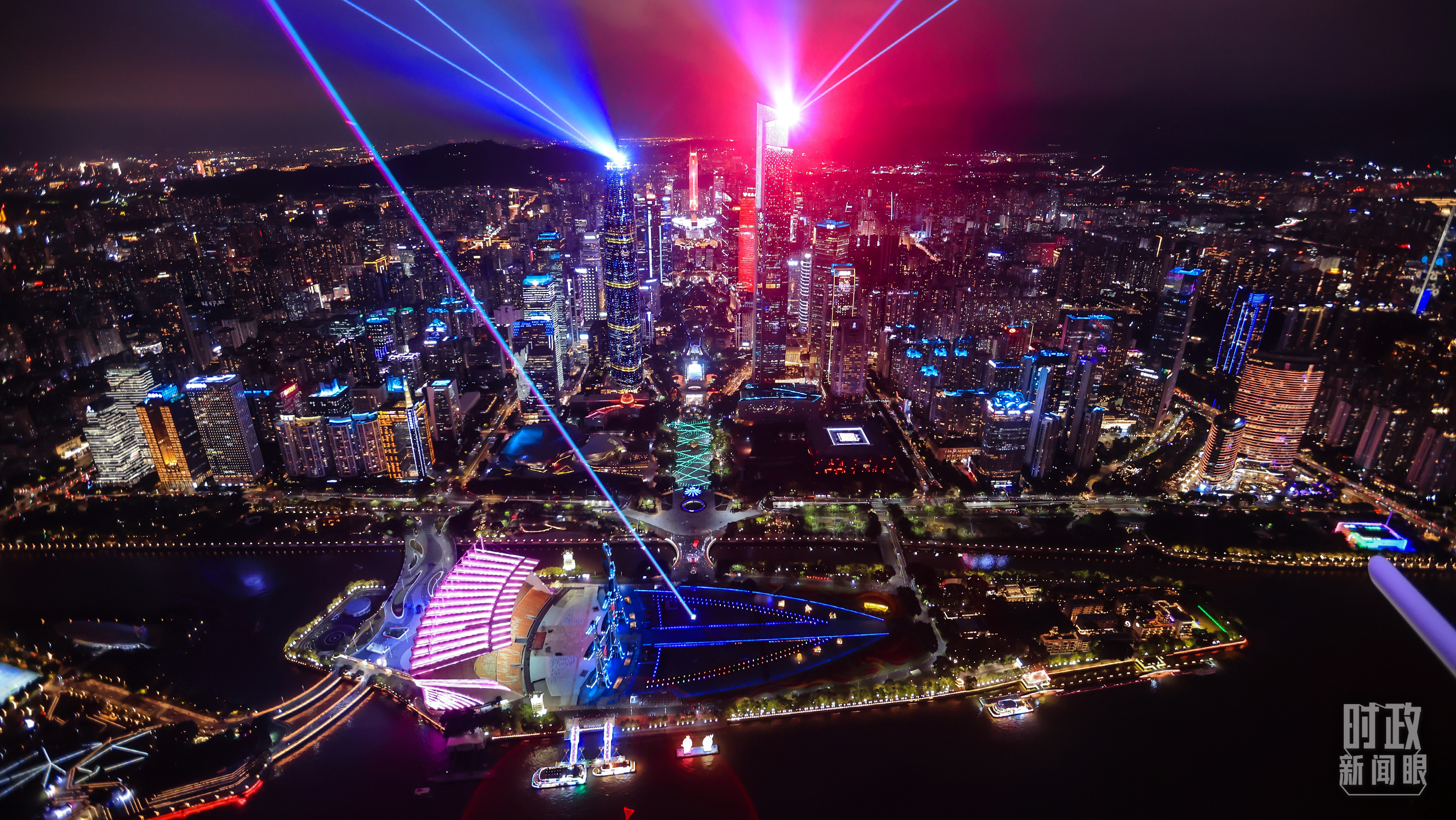 開幕式巧妙融入香港維多利亞港、澳門大三巴、廣州塔等城市地標(biāo)元素,實(shí)現(xiàn)粵港澳三地同步升國旗儀式。
