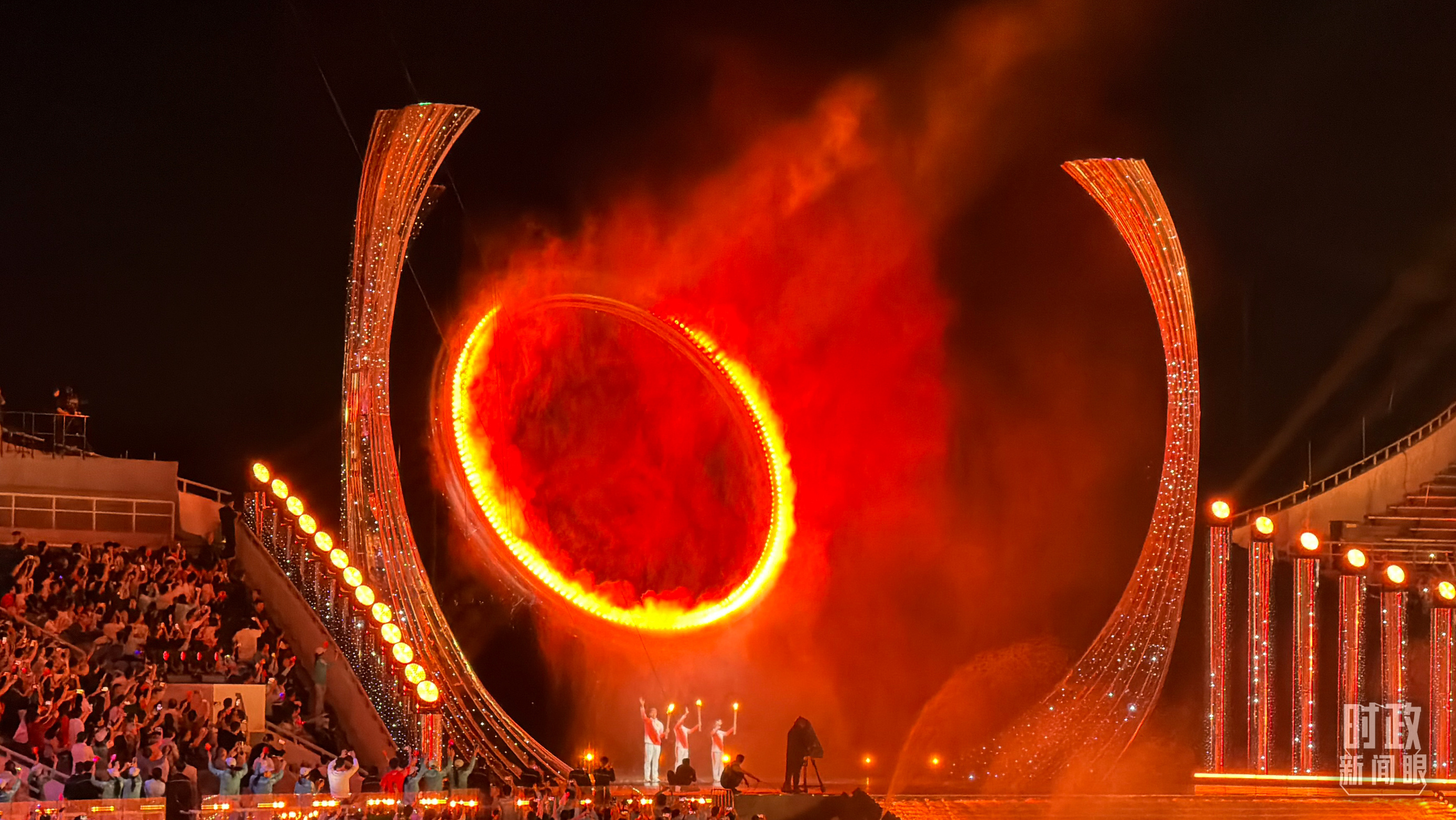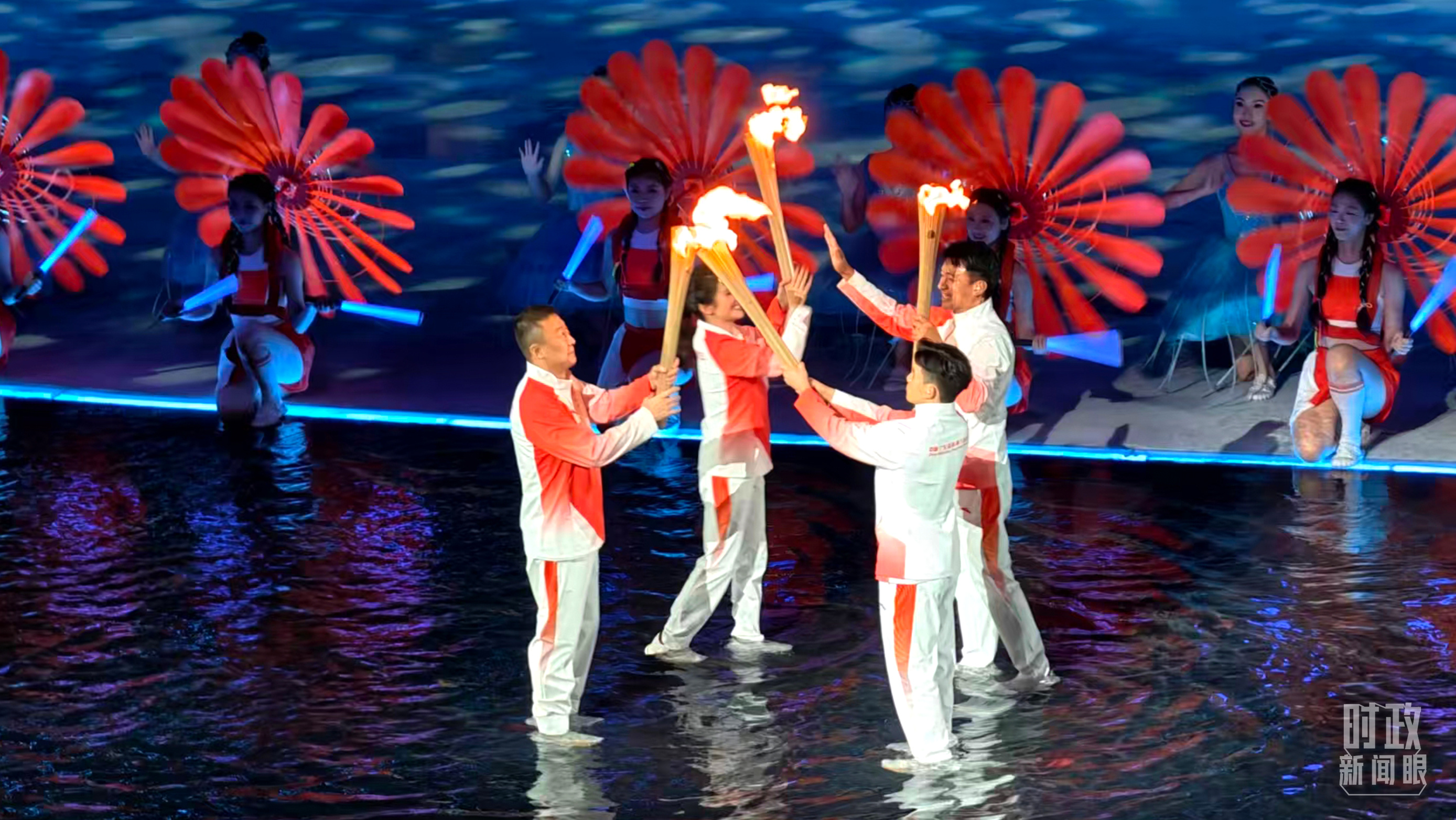 第十五屆全運(yùn)會主火炬點(diǎn)燃環(huán)節(jié)。(總臺央視記者范一鳴、蔣碩拍攝)