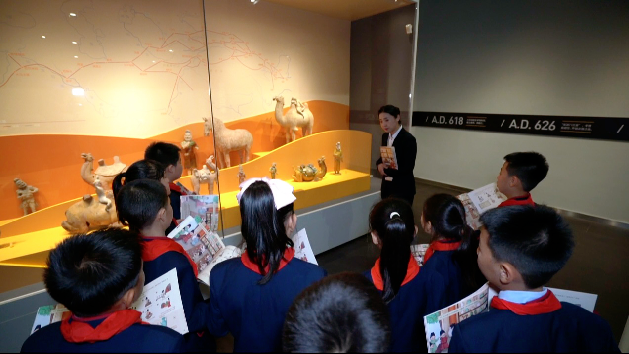 “我們不斷加強對文物深入細(xì)致的觀察和了解,以便更好保護和利用文物資源,讓觀眾更直觀看到文物的價值?!蔽靼膊┪镌航逃茝V部負(fù)責(zé)人張莉說。近年來,西安博物院創(chuàng)新展覽形式和活態(tài)傳承,延伸“教育場景”,通過常態(tài)化開展?jié)h服折紙、編輯社教讀本等,讓文物可“觸摸”,文化能感知,歷史可“對話”。
