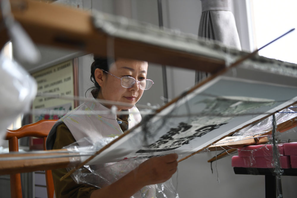 2023年9月8日,陜西千陽繡娘王紅燕在西秦刺繡文化產(chǎn)業(yè)園內(nèi)刺繡。陜西千陽縣是國家級非物質(zhì)文化遺產(chǎn)“西秦刺繡”的重要發(fā)祥地和傳承地。近年來,千陽縣將西秦刺繡作為助農(nóng)增收的重要產(chǎn)業(yè),推動非遺項目產(chǎn)業(yè)化發(fā)展,助力鄉(xiāng)村振興。