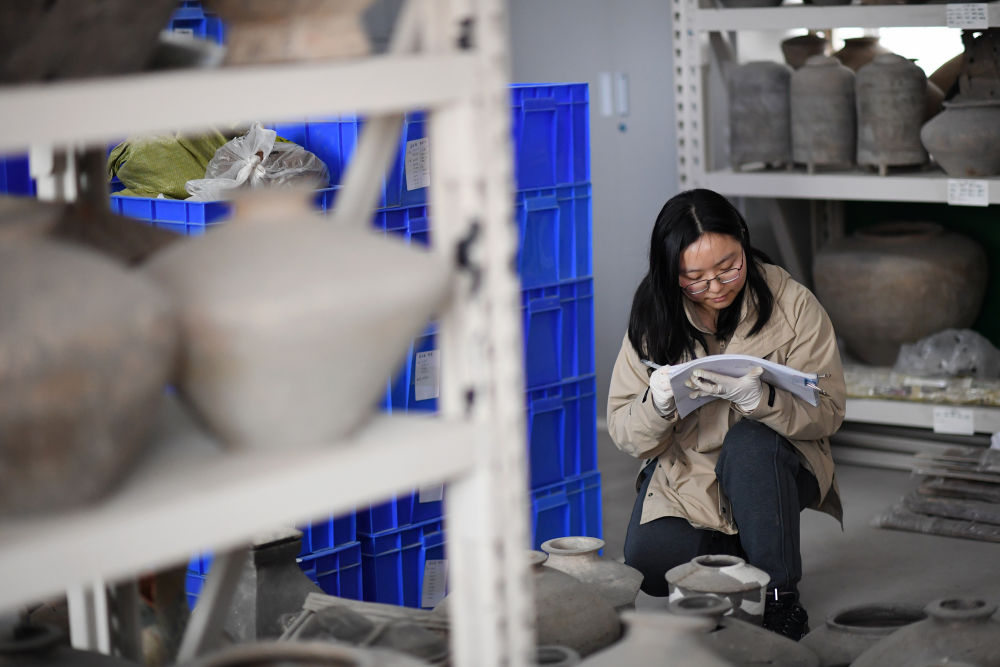 2024年3月5日,陜西省考古研究院女子考古隊隊員張佳楊在文物庫房登記文物信息。成立于2020年的女子考古隊先后完成包括蔣劉仰韶晚期環(huán)壕聚落、大堡子西漢陵邑墓地等重要發(fā)現(xiàn)在內(nèi)的基本建設考古項目數(shù)十項。