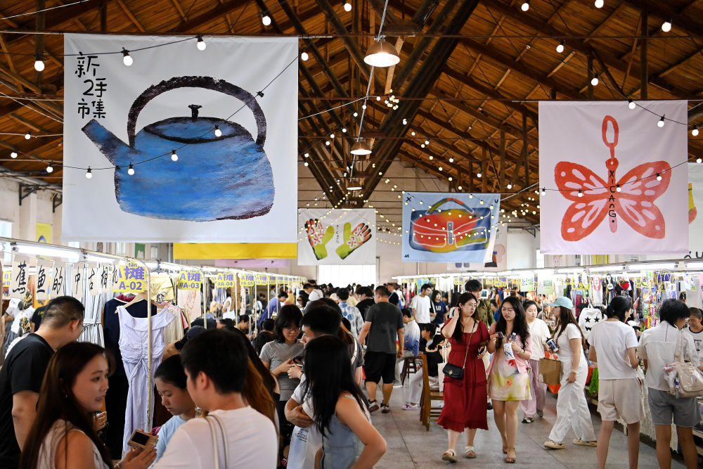2025年7月5日,游客在西安西倉市集文創(chuàng)公園內(nèi)的“新二手市集”上參觀游覽。2024年以來,西安對西倉區(qū)域?qū)嵤拔⒏?、輕改造”,在保留核心區(qū)傳統(tǒng)集市風貌的基礎上,升級改造原有設施,建設西倉市集文創(chuàng)公園,打造“復合型文化消費新場景”;通過引入創(chuàng)新業(yè)態(tài)、開設“新二手市集”等方式,讓咖啡潮玩、非遺體驗、城市記憶展覽等年輕化元素與市井煙火相融共生,使老城核心區(qū)在“微更新”中持續(xù)煥發(fā)新活力。
