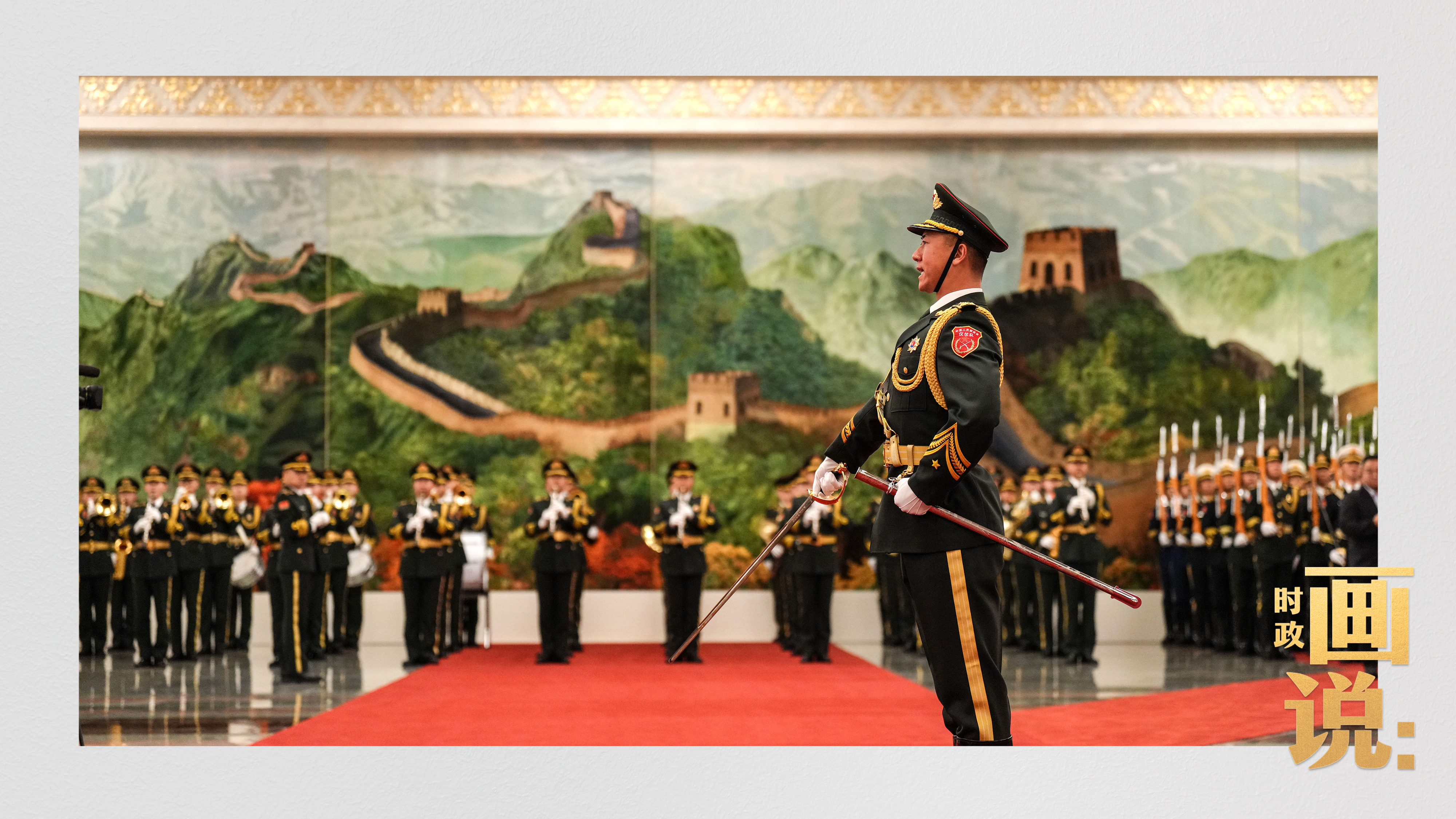 △馬克龍在習(xí)近平陪同下檢閱中國人民解放軍儀仗隊并觀看分列式