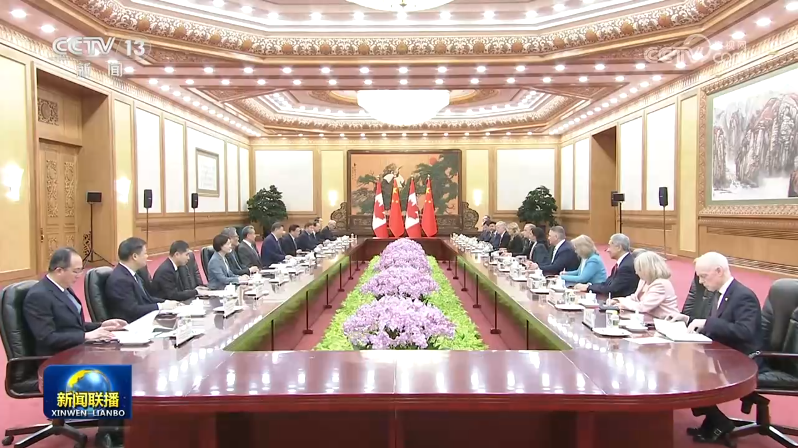 1月16日上午,國(guó)家主席習(xí)近平在北京人民大會(huì)堂會(huì)見(jiàn)來(lái)華進(jìn)行正式訪(fǎng)問(wèn)的加拿大總理卡尼。