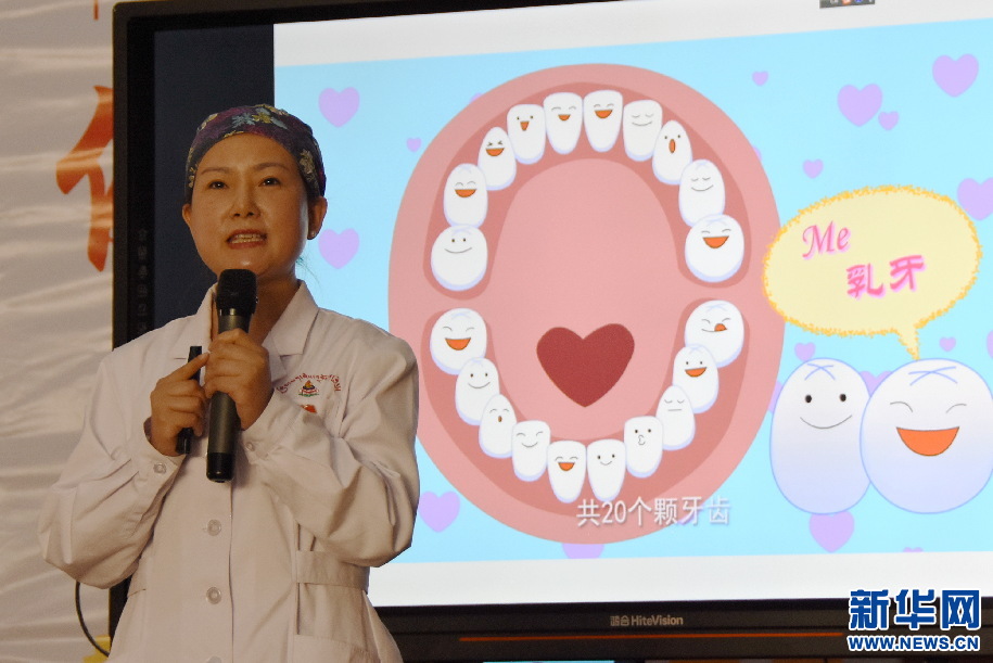 這是18日在西藏山南市第三小學(xué)禮堂的一個(gè)場景。在全國愛牙日來臨之際,湖南省第九批援藏工作隊(duì)組織的愛牙公益活動(dòng)于當(dāng)日舉行。中南大學(xué)湘雅口腔醫(yī)(學(xué))院援藏醫(yī)生李毅萍為在場的300多名小學(xué)生和家長,做了一場生動(dòng)活潑的口腔衛(wèi)生知識(shí)科普。