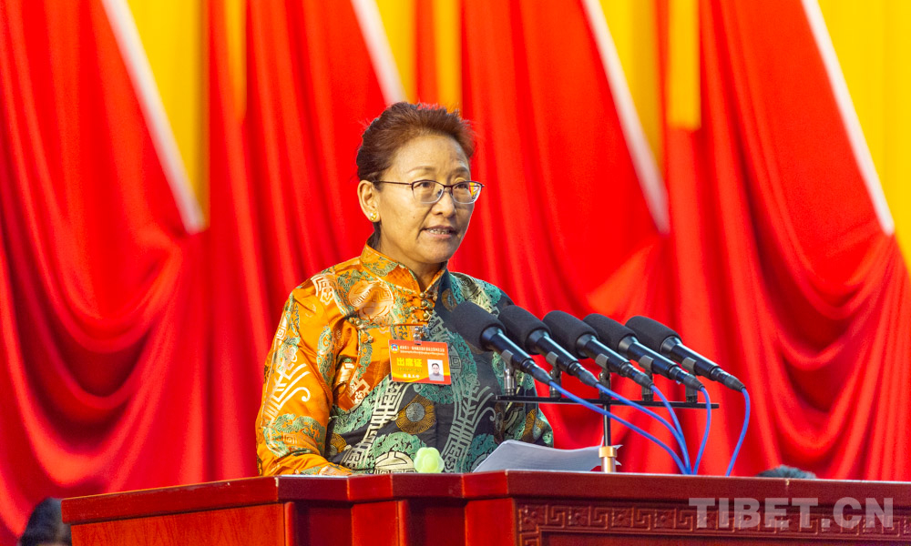 圖為格桑玉珍在政協(xié)第十一屆西藏自治區(qū)委員會(huì)第四次會(huì)議上發(fā)言 攝影:趙耀