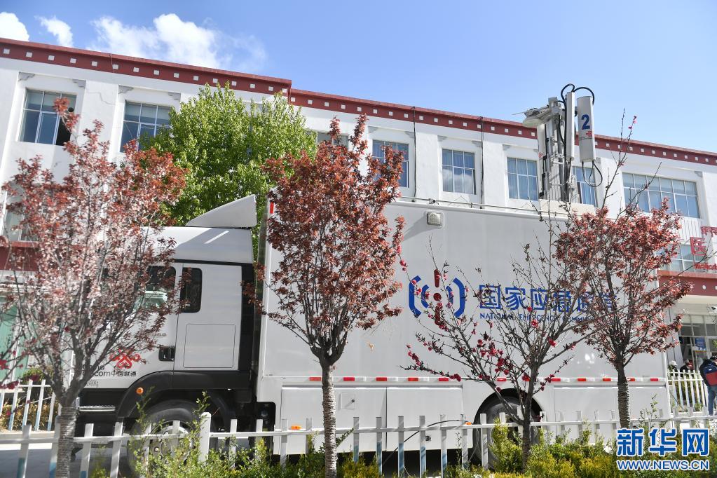 這是4月19日在拉薩市人民醫(yī)院拍攝的保障遠程骨科手術(shù)順利進行的通訊保障車輛。新華社記者 孫瑞博 攝